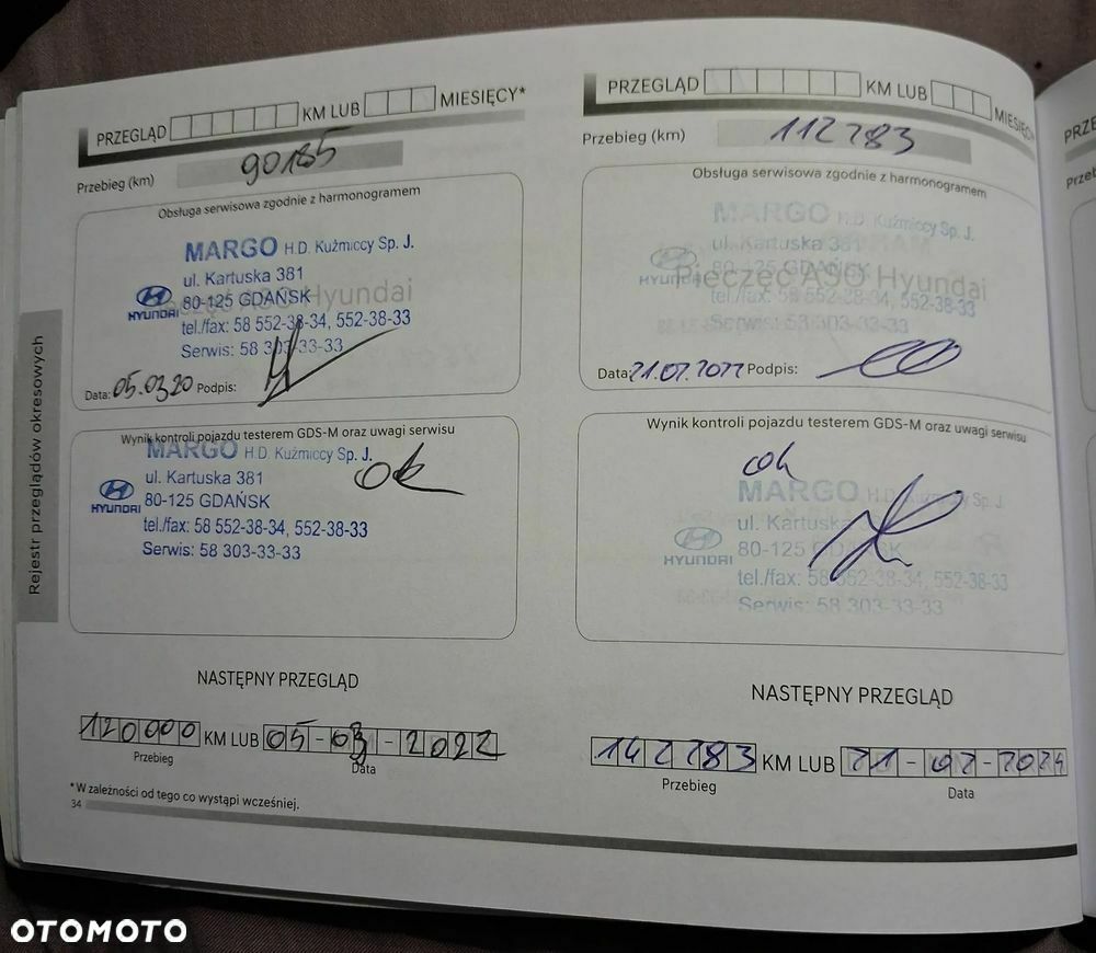 5. Przegląd - ma się odbyć przy przebiegu 142283 km