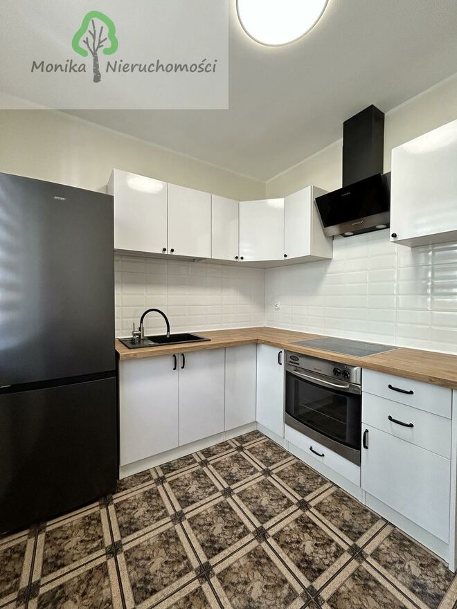 * kuchnia: nowa zabudowa meblowa, lodówka, płyta ceramiczna, piekarnik, okap, stół + 2 krzesła (brak zmywarki),