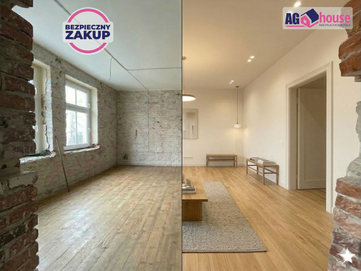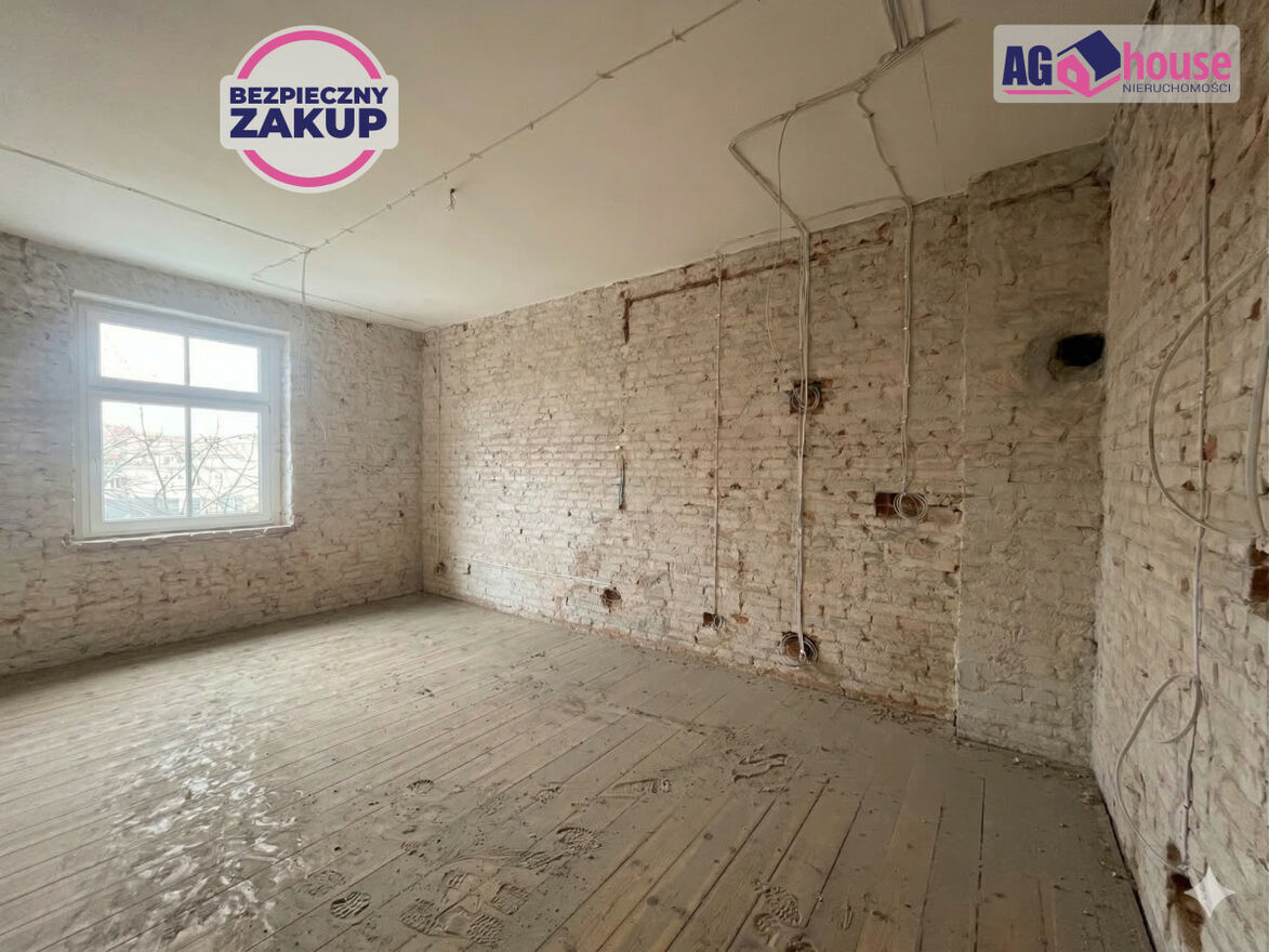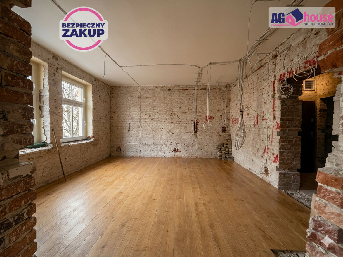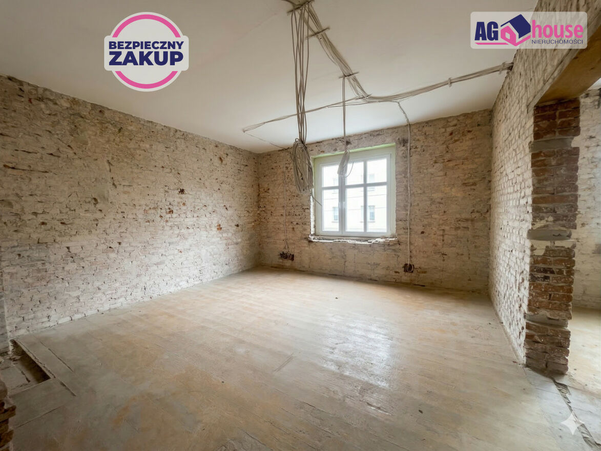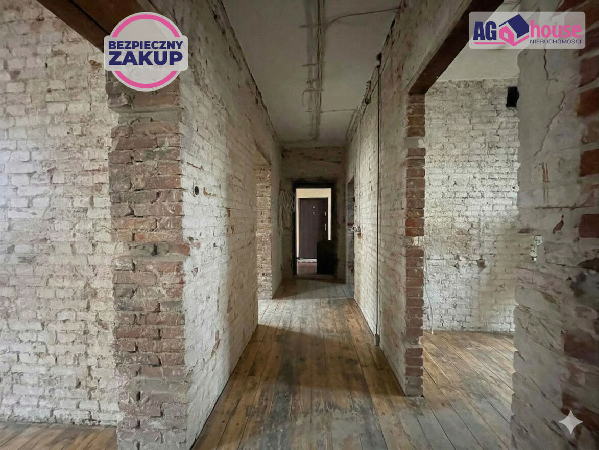 Stan: Mieszkanie przygotowane do remontu (stan surowy). Odkryta oryginalna czerwona cegła na ścianach nadaje wnętrzu niepowtarzalny, industrialny charakter.