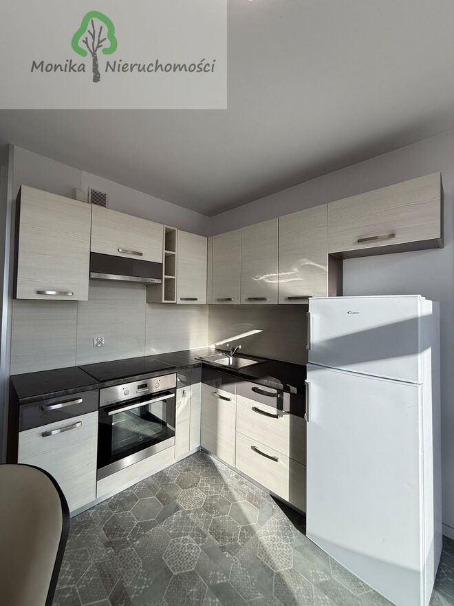 Mieszkanie wyposażone w zabudowę kuchenną oraz sprzęt AGD (bez zmywarki). Łazienka z kabiną prysznicową oraz pralką.