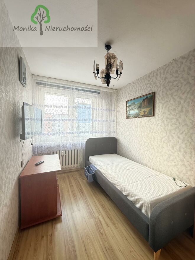 - w mniejszym pokoju: duża szafa z drzwiami przesuwnymi oraz łóżko medyczne