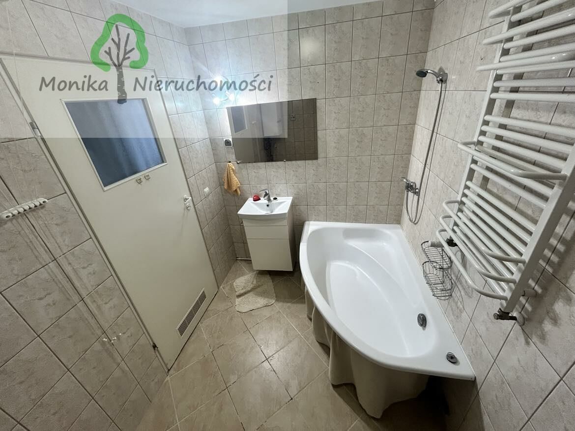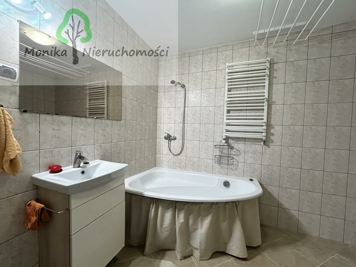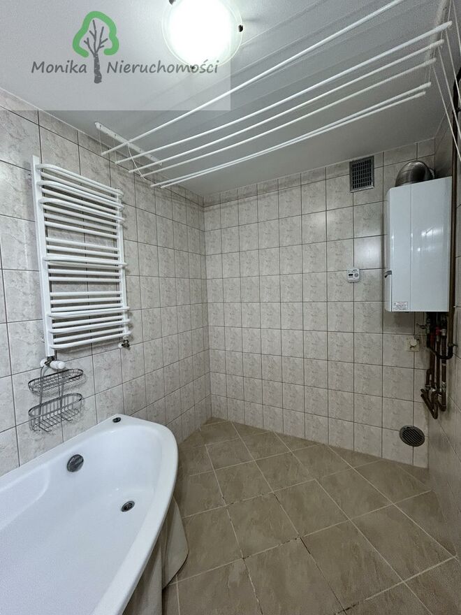 W łazience znajduje się dwufunkcyjny piec gazowy, który zapewnia ogrzewanie mieszkania oraz ciepłą wodę.