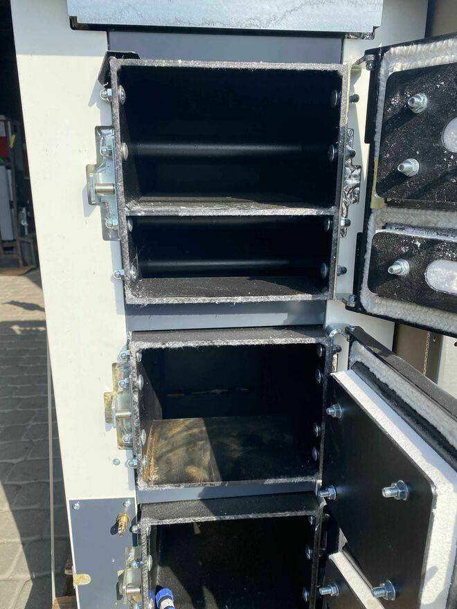 ponad 90 % przy bardzo prostej konstrukcji wymiennika. Duża komora rozprężna zapewnia wygodną obsługę kotła.