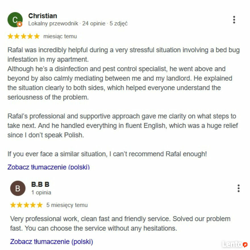 - Zakres usług:Dezynsekcja
