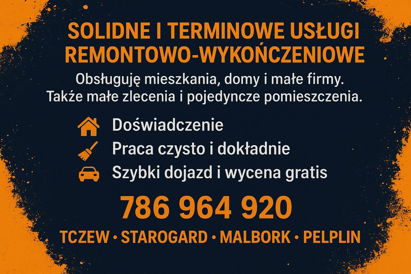 Oferuję solidne usługi remontowo-wykończeniowe na terenie Tczewa i okolic.