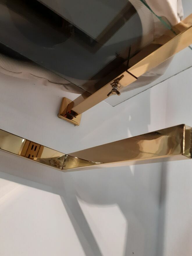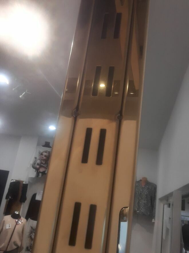 Systemy ścienne Złote w stylu Glamur . Z możliwością ustawienia wysokości wieszania wieszaków w zależności od długości odzieży. Bardzo ładnie eksponują odzież. Mam również trzy szklane półki na górze systemu co umożliwia jeszcze bardziej wyeksponować towar stawiając Manekin tors czy torebki itp. Systemy ścienne mam 3 komplety pokazane na podpiętych zdjęciach . Wysokość 240cm / Szerokość 104cm. Poprzeczki do zawieszenia mają 100cm. Posiadam 6 szt. stelaż / poprzeczka przednia 8szt/ poprzeczka tylna 6 szt. / 8 szt. poprzeczka do zawieszenia . Poprzeczki można na wieszaki wieszać różnych wysokościach.Sprawdź zainteresowanie tym ogłoszeniem